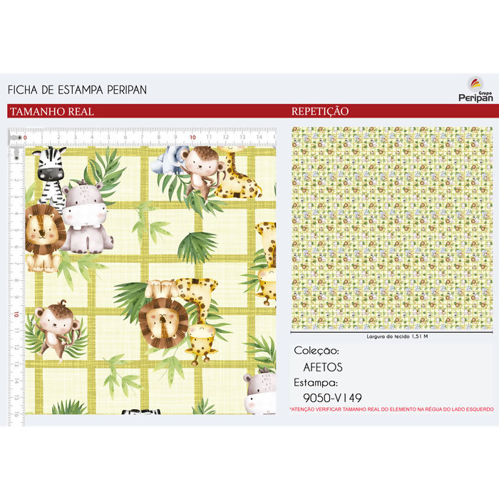 Descrição Tecido Tricoline 100% Algodão - Afetos - D9050 - V149 - 0,50m x 1,5m