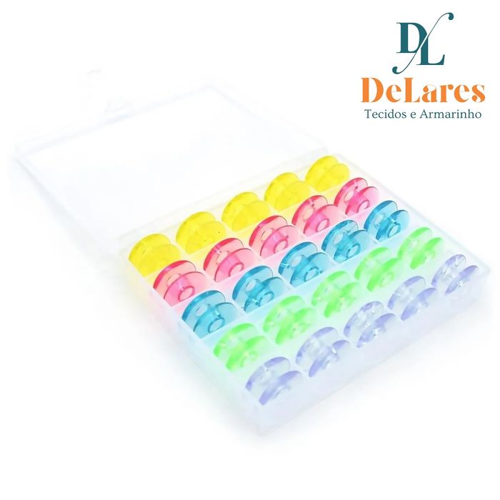 Contém: 1 Estojo com 25 Bobinas BAIXAS plásticas Coloridas
