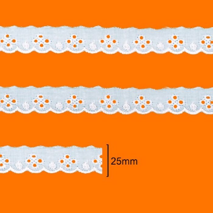 Descrição Bordado Inglês - CTL 015 - 25MM - Branco - Peça com 13,7m