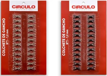 O Colchete de Gancho Círculo é um acessório de alta qualidade, delicado e ideal para acabamentos eficazes de peças artesanais variadas. Esse item pode ser aplicado a bolsas, peças de moda íntima, vestidos, shorts, calças, projetos de costura criativa e o que mais a imaginação do artesão permitir. Aplique os Colchetes de Gancho a seus trabalhos facilmente por meio de costura e não sofra mais com imprevistos de botões que abrem acidentalmente.