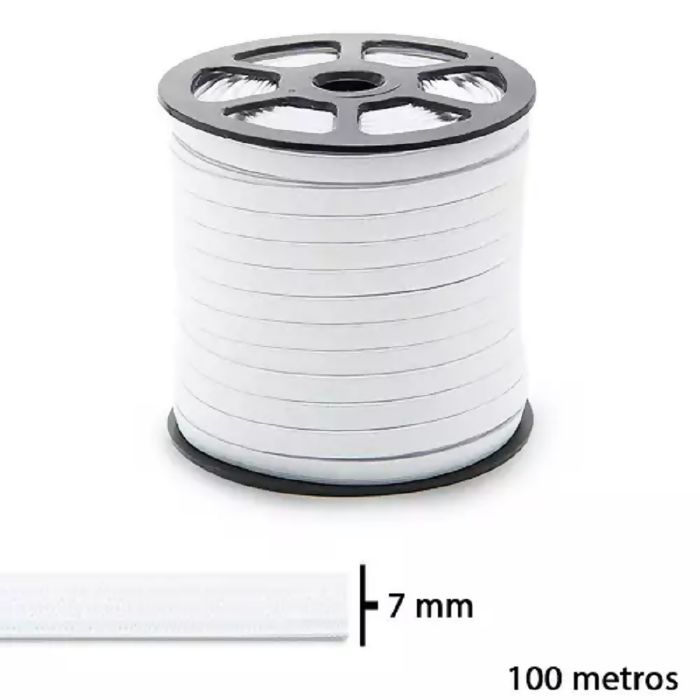 Descrição Elástico de Embutir - Jaraguá 08 - Branco (Cru) - 7MM - Rolo com 100Mts - Zanotti