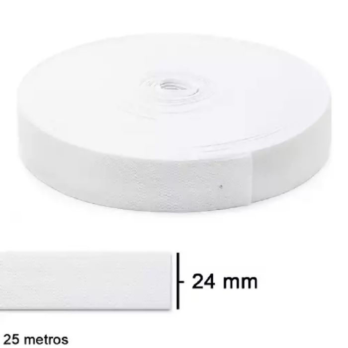 Descrição Elástico de Embutir - Jaraguá 25 - Branco (Cru) - 24MM - Peça com 25Mts - Zanotti
