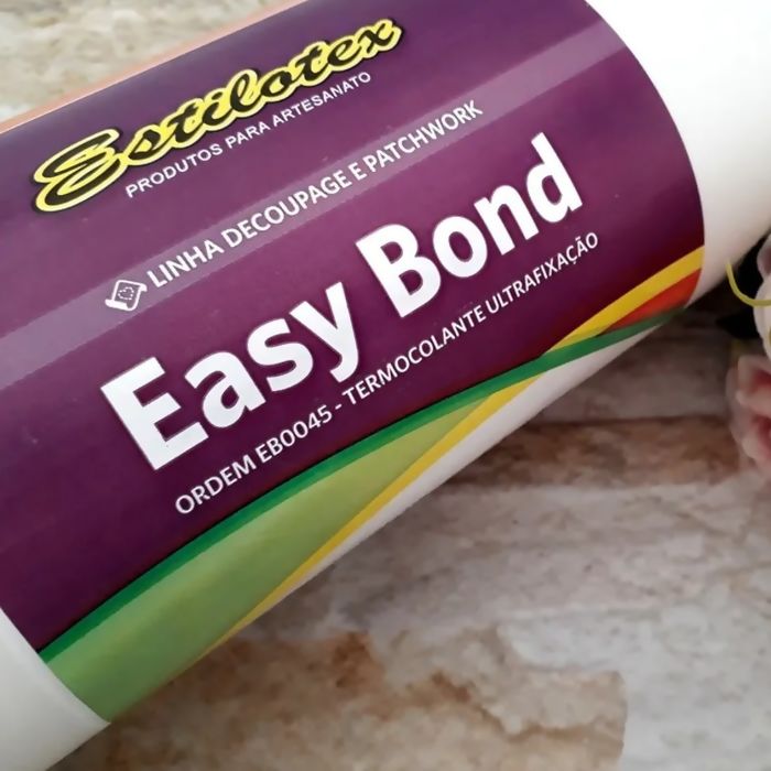 A palavra Easy, em sua pura tradução significa 'fácil' e quando ouvimos a palavra BOND logo pensamos em algo que cola, liga, une, amarra, enlaça, prende e fixa permanente. É exatamente isso, a entretela termocolante, lançamento da Estilotex chama-se Easy Bond, em uma tradução livre significa 'ligação fácil'. Easy Bond é um filme adesivo termocolante que possui uma folha siliconada que o acompanha permitindo que as marcações, desenhos ou impressões sejam feitos antes do corte. Sendo ativado com o ferro de passar, essa sim é a Entretela com cola permanente, que deve-se sempre ter máxima atenção para fixação, pois depois de fixado se desejar retirá-lo da base onde foi colocado poderá danificar a base e o produto. Easy Bond por ter uma ultra fixação dispensa o uso de acabamento com linha. A praticidade para o manuseio do produto somada a sua qualidade é o que faz o Easy Bond um produto diferente de todos os outros existentes no mercado. Trata-se de um produto de ultra fixação, contudo é macio e leve, o que permite passar a agulha com maior facilidade caso exista a preferência pelo acabamento final.