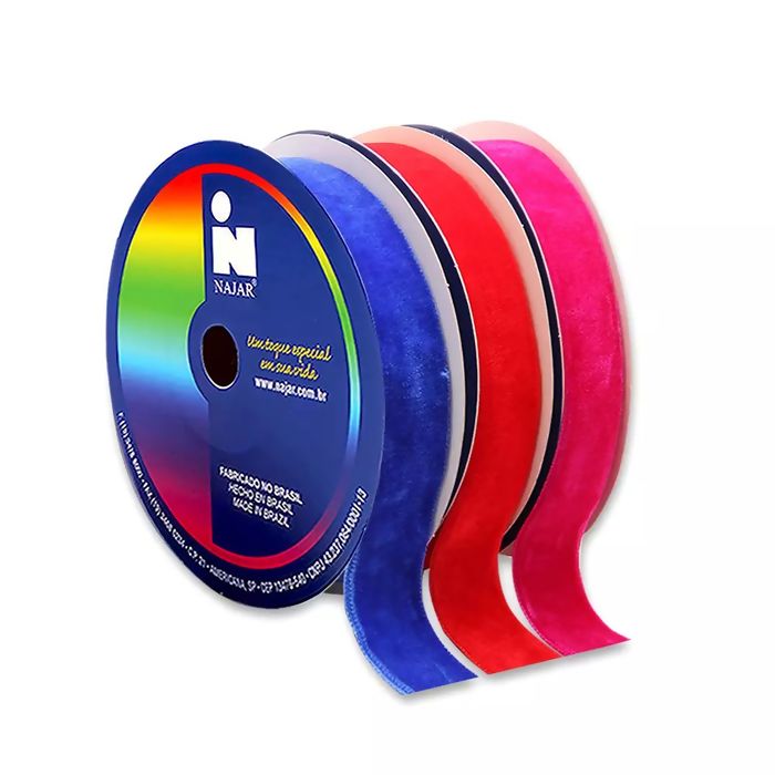 Fita Veludo Najar, utilizada para diversas finalidades como embrulhos, alças, decoração de ambientes, artesanato, bem-casado, convites, enfeites de flores, toalhas, etc.  Fita de excelente qualidade, com lindas cores e modelos, que deixarão seu trabalho muito mais prático e bonito.  Para informações de preços e disponibilidade de estoque, entre em contato com nossa equipe, através do seguinte link  <a href="https://linktr.ee/dedtecidosearmarinho?utm_source=linktree_profile_share" target="_blank" rel="external">"Click Aquí"</a>