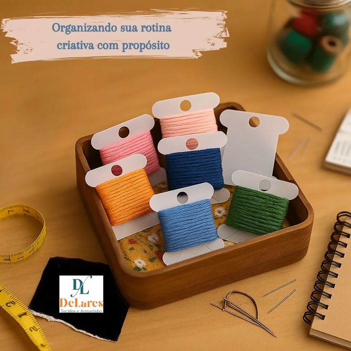 Com recortes precisos para prender a ponta da linha, furo superior para pendurar e material resistente, eles evitam bagunça, protegem seus fios e trazem leveza à sua rotina criativa.