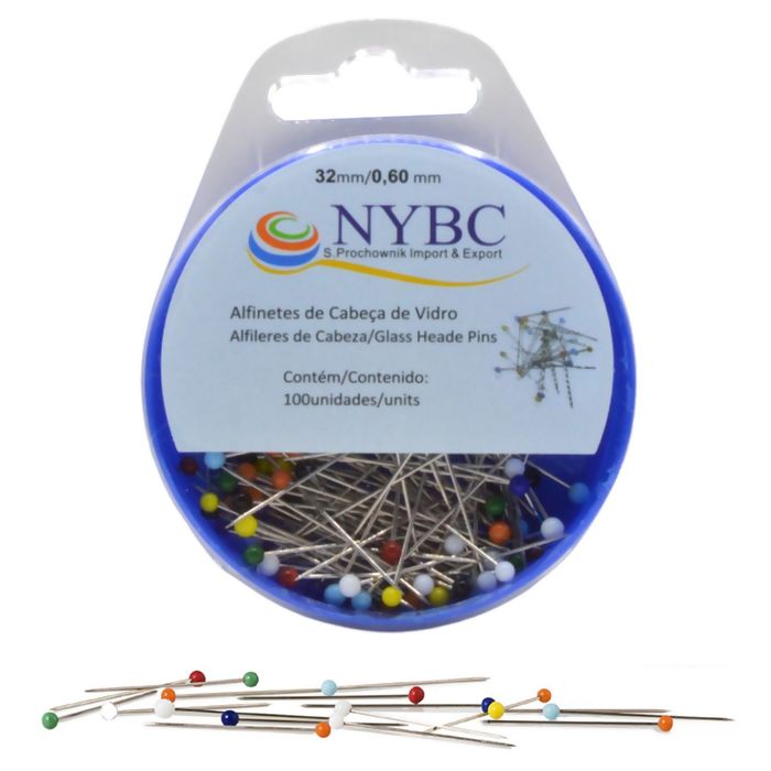 Características do Produto Kit de Alfinete de Cabeça de Vidro 32mm/0,60mm - NYBC - Contém 100 Un