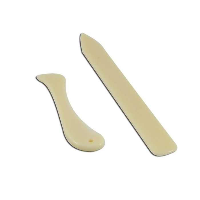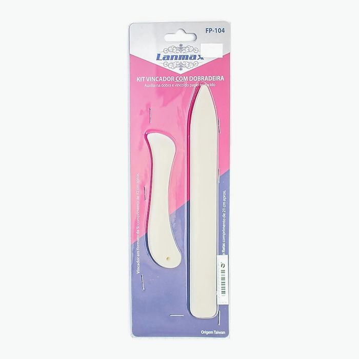 Kit com vincador e dobradeira. Auxilia na dobra e vinco do papel ou tecido. Pode ser utilizado em encadernação, cartonagem, scrapbooking, origami e outros.