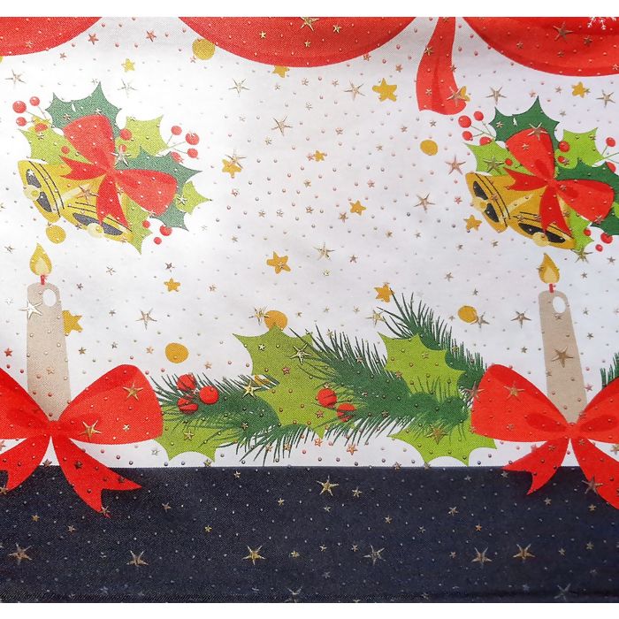 Devido a sua composição de 100% Poliéster, ser um tecido de bom caimento e resistência. O Tecido Oxford com Estampado com Brilho é feito em 100% poliéster e é perfeito para suas criações natalinas. Ideal para confeccionar pano de mesa, enfeites, roupas e acessórios temáticos, ele traz um toque festivo e alegre para qualquer projeto. Sua estampa vibrante vai encantar a todos!