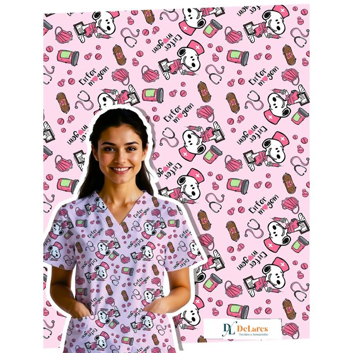 Descrição Tecido Oxfordine Estampado Profissões 100% Poliéster - Enfermagem Snoopy - 0,50m x 1,50m