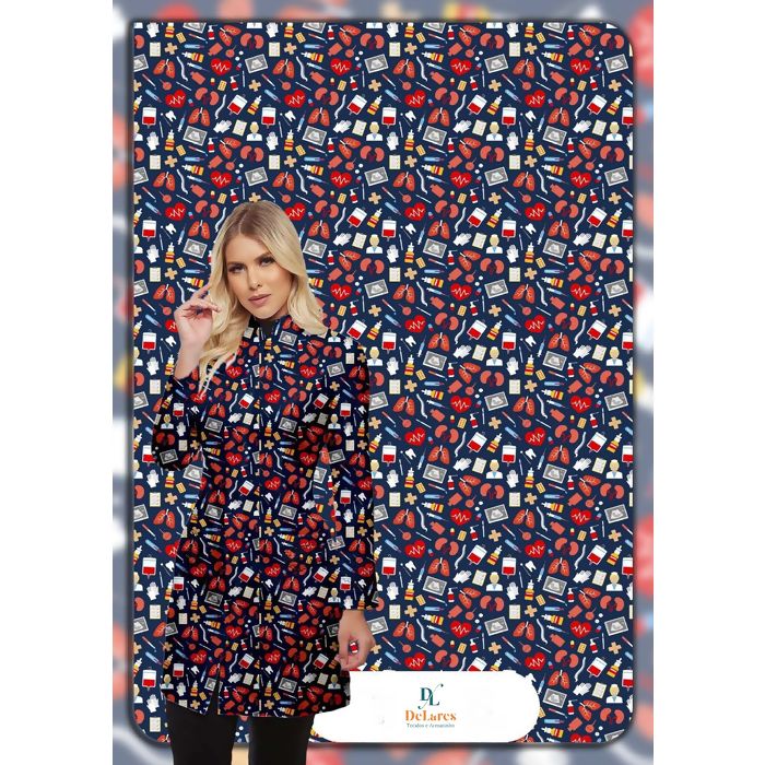 Tecido Oxfordine Estampado Profissões 100% Poliéster - Saúde 11346 - 1,00m x 1,47m