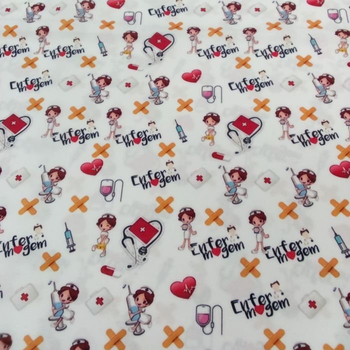 Tecido Oxfordine Estampado Profissões 100% Poliéster - Saúde 15545 - 1,00m x 1,47m
