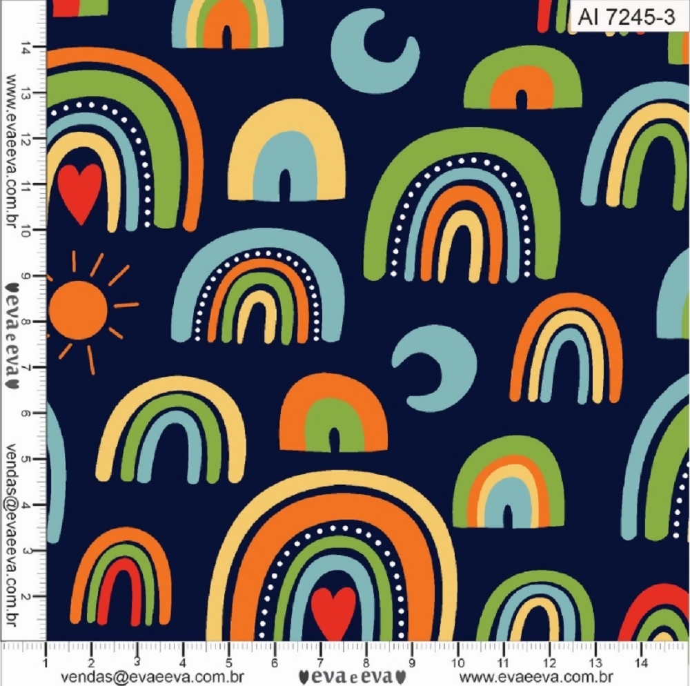 Quanto mede cada Unidade? Tecido Tricoline 100% Algodão - Arco Iris - 7245 - Var3 Marinho - 0,50m x 1,50m