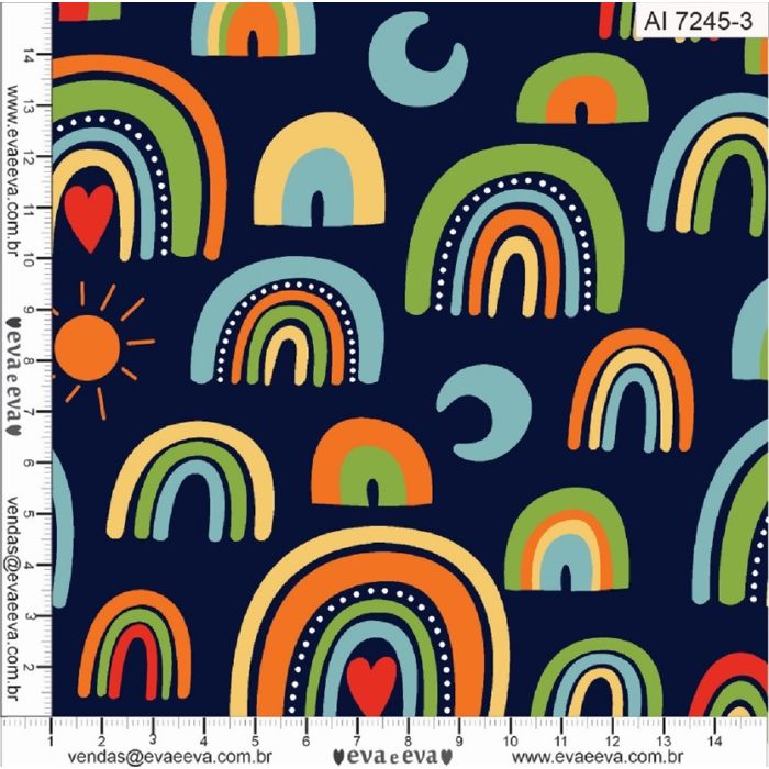 Descrição Tecido Tricoline 100% Algodão - Arco Iris - 7245 - Var3 Marinho - 0,50m x 1,50m