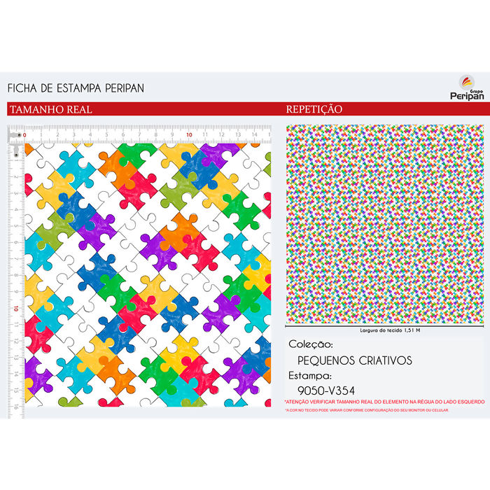 Quanto mede cada Unidade? Tecido Tricoline 100% Algodão - Autismo - D9050 - V354 - 0,50m x 1,50m