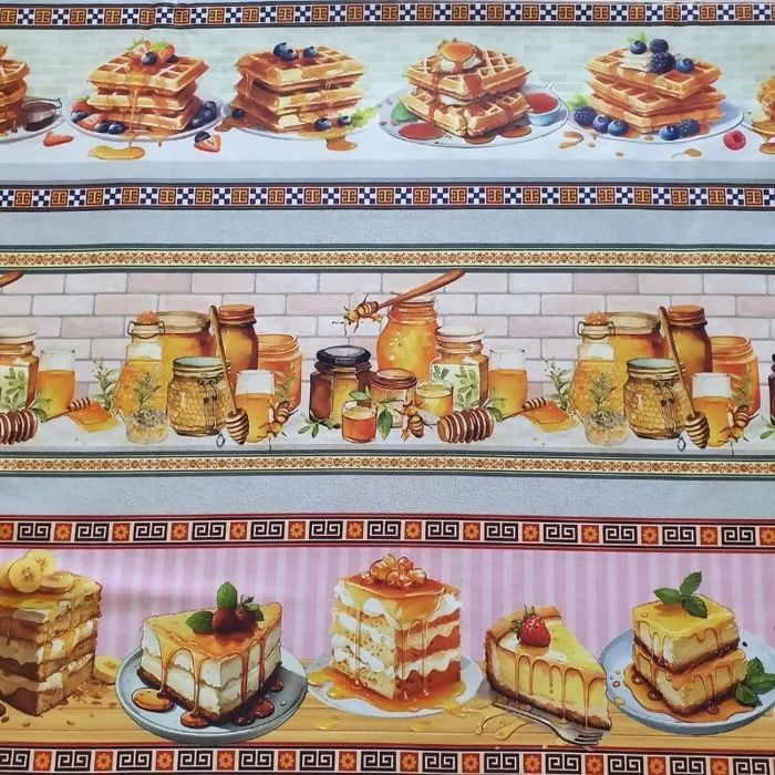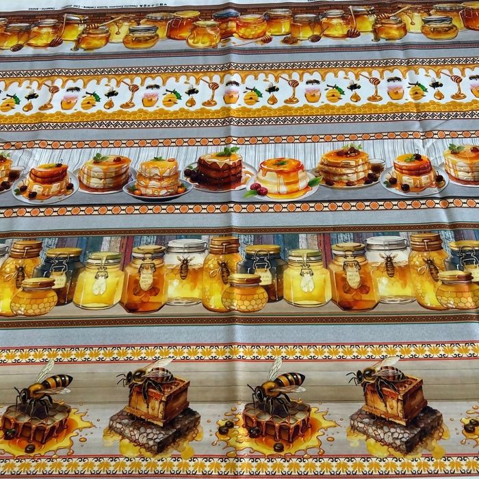 Tecido Tricoline 100% Algodão - Barrado Digital - 204201- Doce Mel - 0,50m x 1,50m