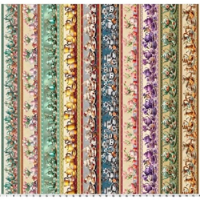 Tecido Tricoline 100% Algodão - Barrado Digital - 250159 - Jogo de Porcelana - 0,50m x 1,50m