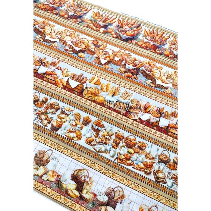 Descrição Tecido Tricoline 100% Algodão - Barrado Digital - 250161-01 - Pães - 0,50mt x 1,50mts