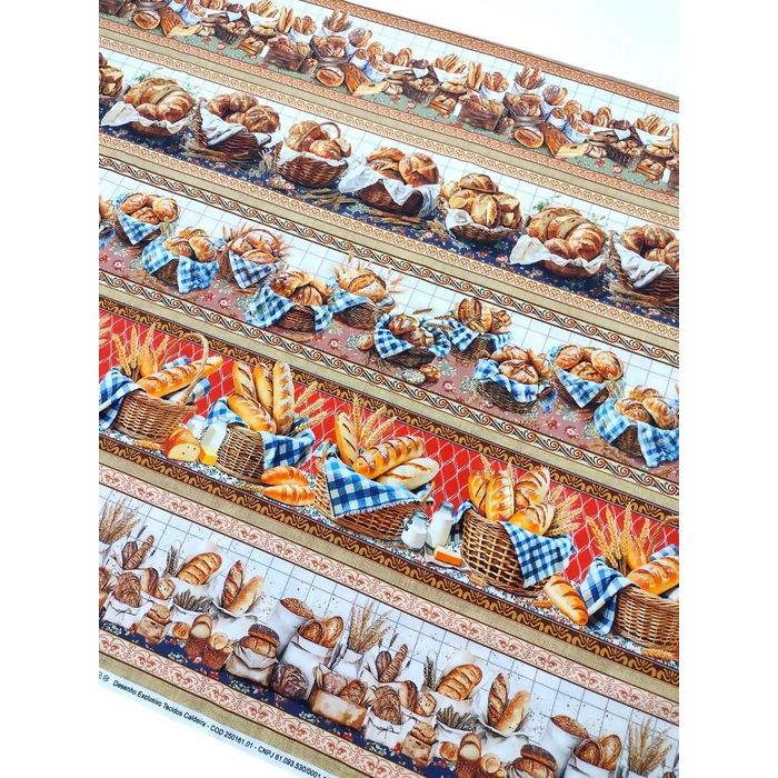 Tecido Tricoline 100% Algodão - Barrado Digital - 250161-01 - Pães - 0,50mt x 1,50mts