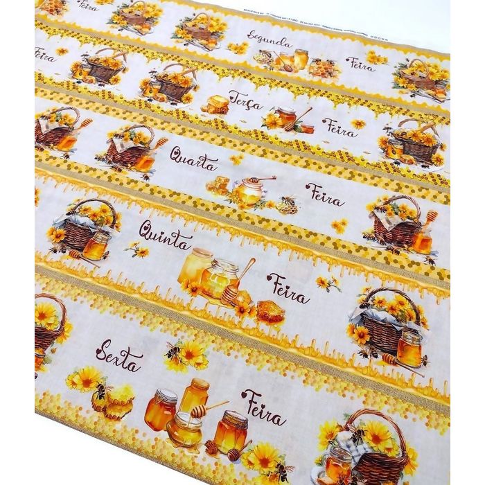 Descrição Tecido Tricoline 100% Algodão - Barrado Digital - 250162 - Semaninha - 0,52mt x 1,50mts