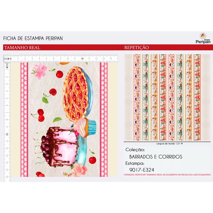 Quanto mede cada Unidade? Tecido Tricoline 100% Algodão - Barrados Cozinha - D9017 - E324 - 0,50m x 1,5m