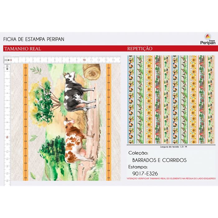 Composição: 100% Algodão Estampa Coleção Peripan Digital Largura: 1,50 metros Gramatura: 121 g / m² 181 g / metro linear