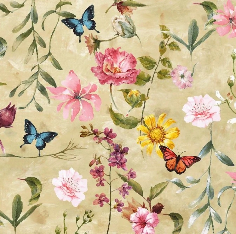 Descrição Tecido Tricoline 100% Algodão - Borboletas - D7218- V01 - 0,50m x 1,50m
