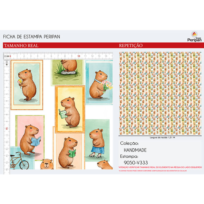 Descrição Tecido Tricoline 100% Algodão - Capivara - D9050 - V333 - 0,50m x 1,50m