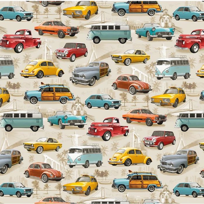 Tecido Tricoline 100% Algodão - Carros - 6063D - 0,50m x 1,5m