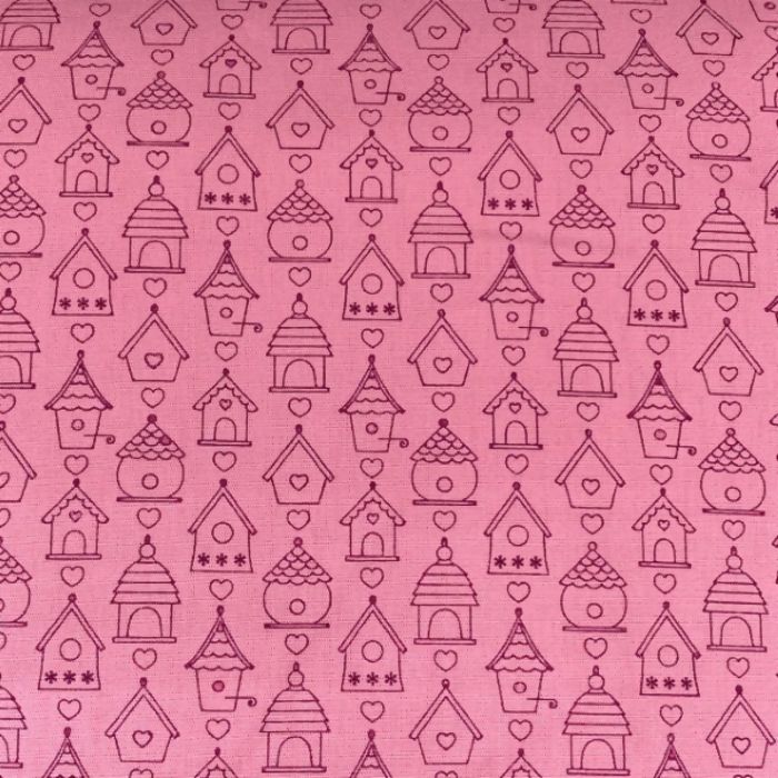 Tecido Tricoline 100% Algodão - Casinhas Rosa - TO8004 - 0,50m x 1,50m