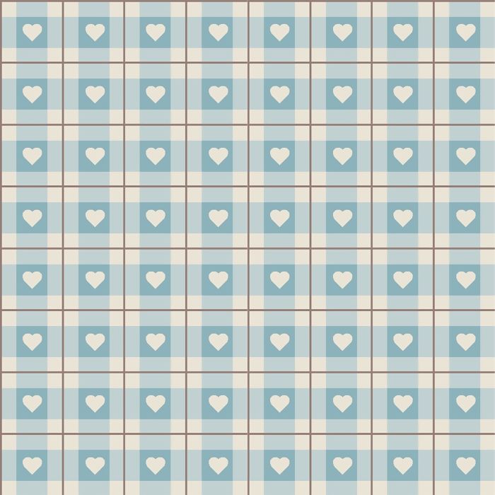 Um Tecido, infinitas possibilidades Tecido Tricoline 100% Algodão - Coração Xadrez Kawaii Azul - 16017 - 0,50m x 1,5m