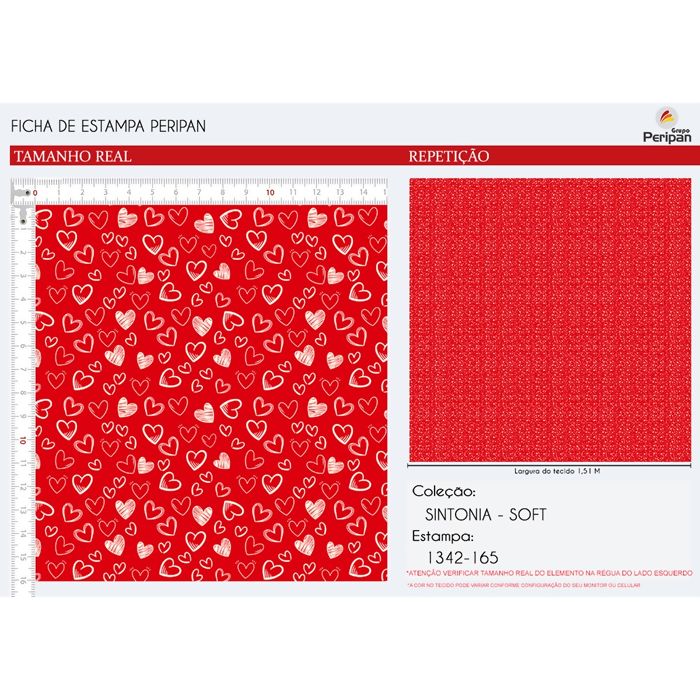 Quanto mede cada Unidade? Tecido Tricoline 100% Algodão - Corações - D1342 - V165 - 0,50m x 1,50m