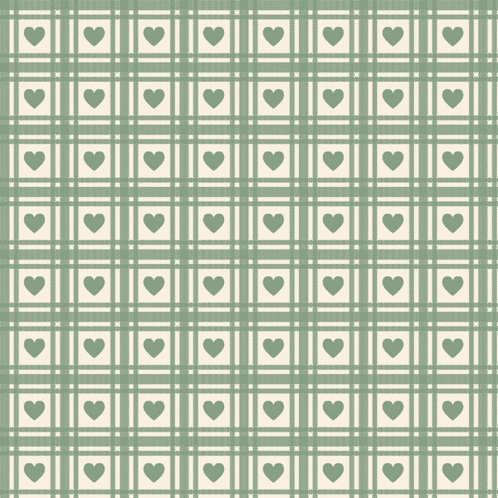 Tecido Tricoline 100% Algodão - Corações Quadriculados Verde Cha -900621 - 0,50m x 1,5m