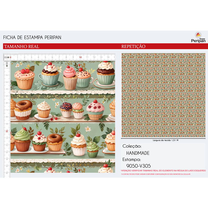 Quanto mede cada Unidade? Tecido Tricoline 100% Algodão - Cupcackes - D9050 - V305 - 0,50m x 1,50m