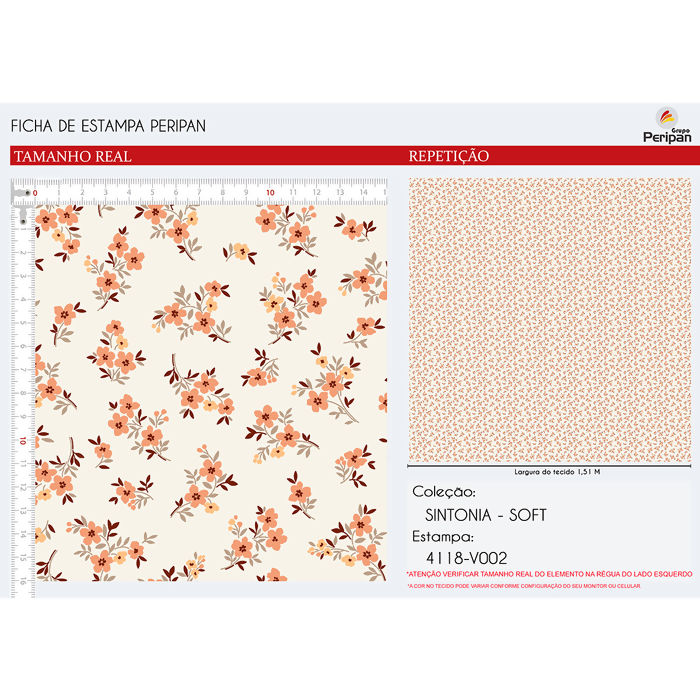Descrição Tecido Tricoline 100% Algodão - Floral - D4118 - V002 - 0,50m x 1,50m
