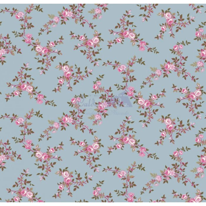 Descrição Tecido Tricoline 100% Algodão - Floral Di Rose (Azul Vintage) - 180620 - Cor02 - 0,50m x 1,5m