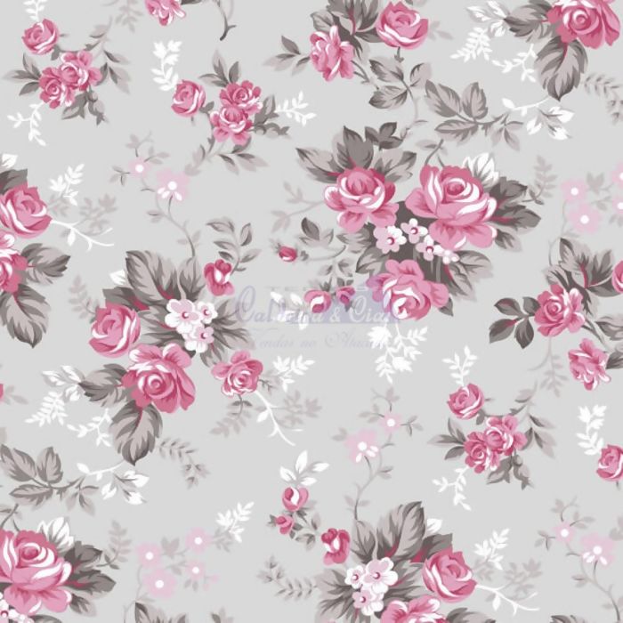Descrição Tecido Tricoline 100% Algodão - Floral Iris (Cinza com Rose) - 180574- Cor04 - 0,50m x 1,5m