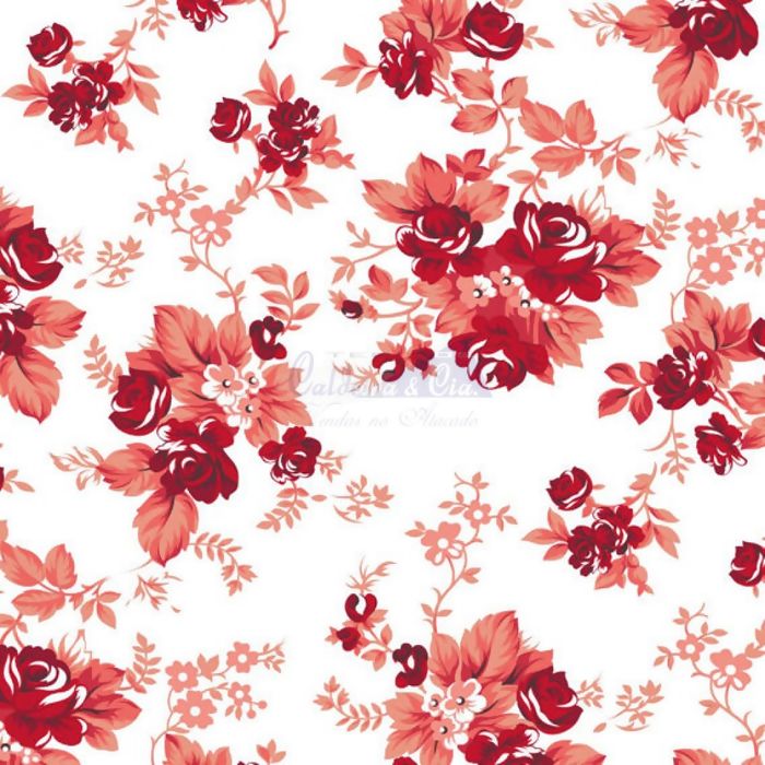 Descrição Tecido Tricoline 100% Algodão - Floral Iris (Vermelho) - 180574- Cor19 - 0,50m x 1,5m