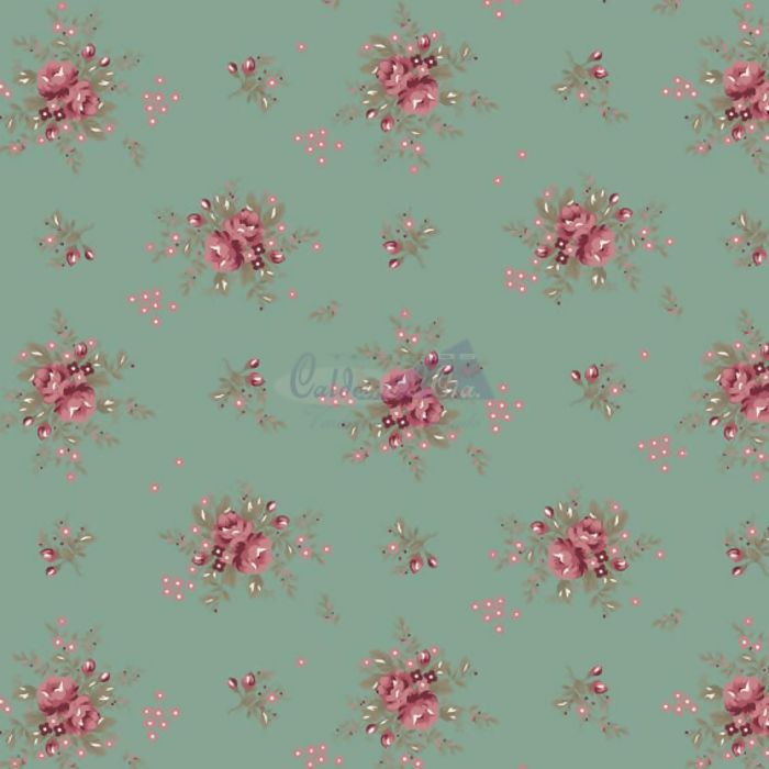 Descrição Tecido Tricoline 100% Algodão - Floral Yasmim (Verde Vintage) - 180659 - Cor05 - 0,50m x 1,5m