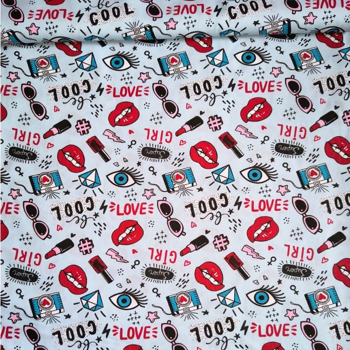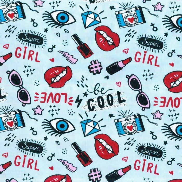 Descrição Tecido Tricoline 100% Algodão - Girls fundo Azul - 1518095 - 0,50m x 1,50m