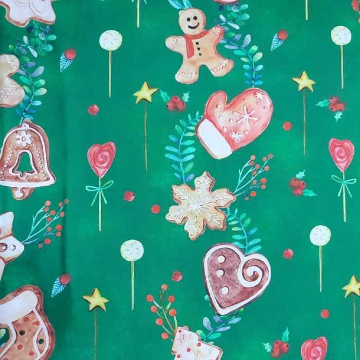 Um Tecido, infinitas possibilidades Tecido Tricoline 100% Algodão - Natal - Biscoitos de Natal - 0,50m x 1,5m