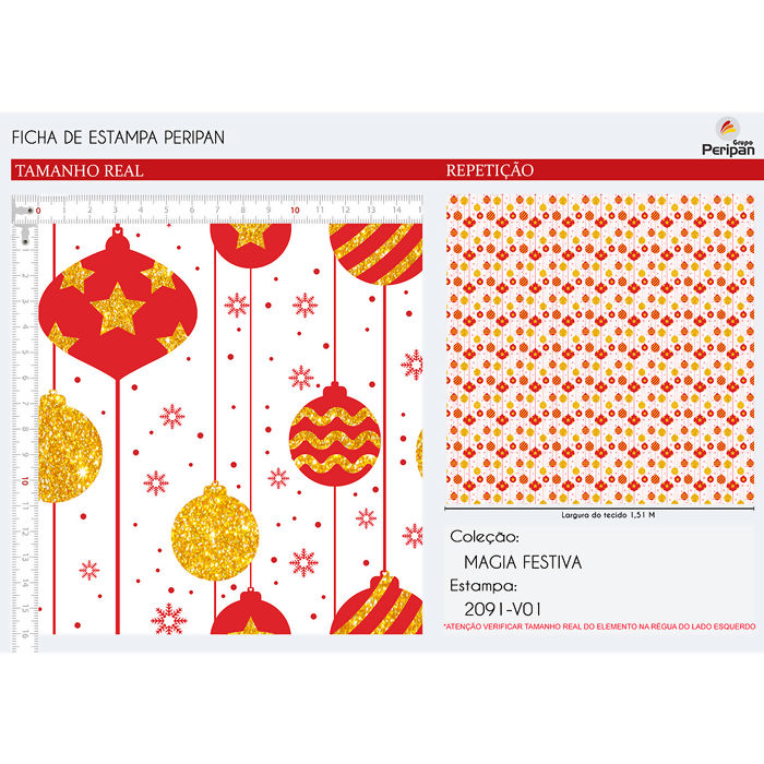 Descrição Tecido Tricoline 100% Algodão - Natal Magia Festiva - D2091 - V001 - 0,50m x 1,5m