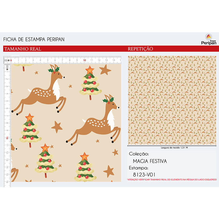Descrição Tecido Tricoline 100% Algodão - Natal Magia Festiva - D8123 - V001 - 0,50m x 1,5m