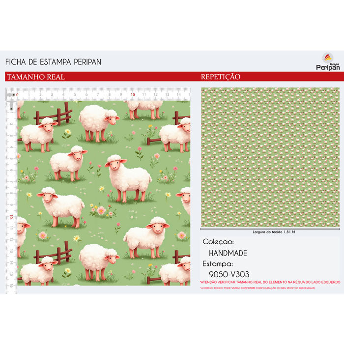 Quanto mede cada Unidade? Tecido Tricoline 100% Algodão - Ovelhinhas - D9050 - V303 - 0,50m x 1,50m