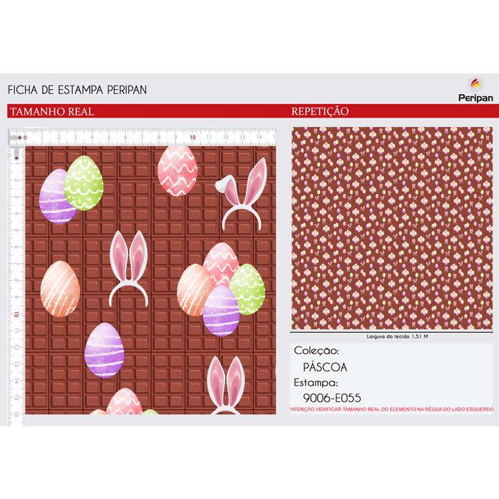Descrição Tecido Tricoline 100% Algodão - Páscoa Digital - D9006 - E055 - 0,50m x 1,5m