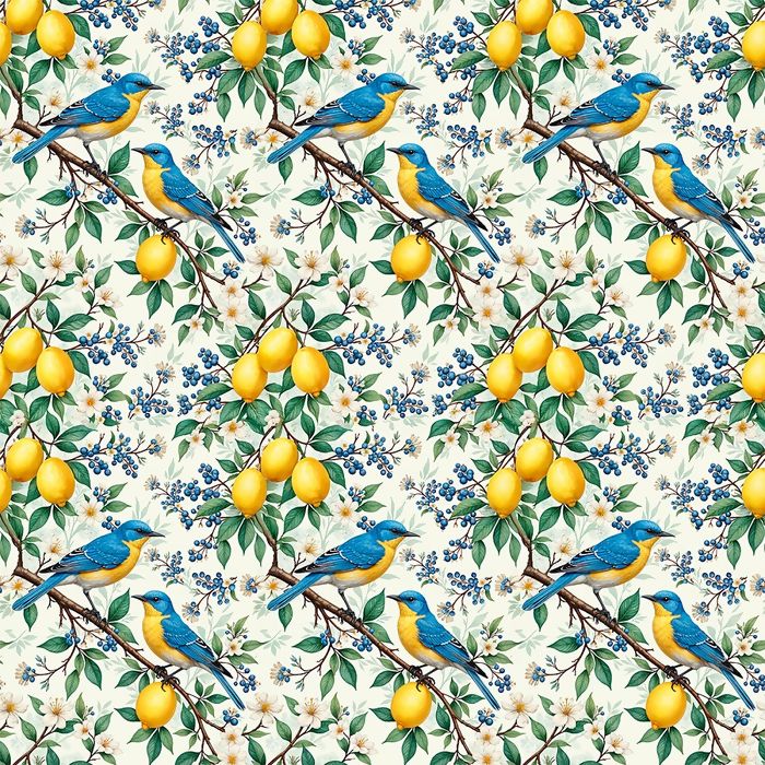 Descrição Tecido Tricoline 100% Algodão - Pássaros e Limões - D9050 - V313 - 0,50m x 1,50m