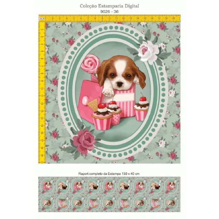 Descrição Tecido Tricoline 100% Algodão - Pet Digital - D9026 - E036 - 0,50m x 1,5m