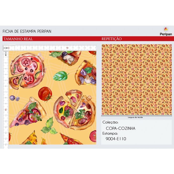 Descrição Tecido Tricoline 100% Algodão - Pizza Digital - D9004 - E110 - 0,50m x 1,5m