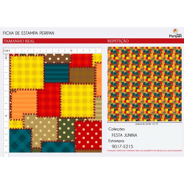 Composição: 100% Algodão Estampa Coleção Peripan Digital Largura: 1,50 metros Gramatura: 121 g / m² 181 g / metro linear