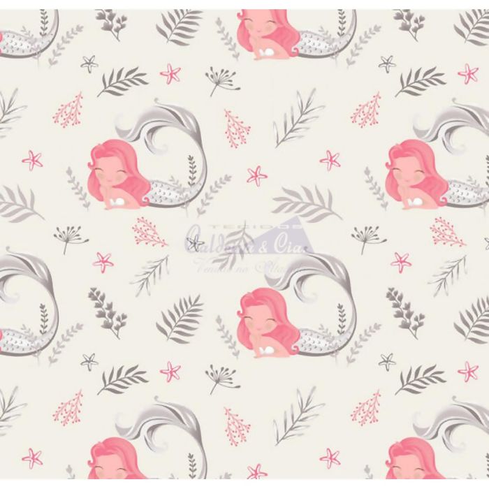 Tecido Tricoline 100% Algodão - Sereia (Cinza com Rose) - 180655 - Cor 05 - 0,50m x 1,50m