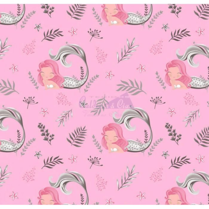 Tecido Tricoline 100% Algodão - Sereia (Rosa com Cinza) - 180655 0,50m x 1,5m | Cor 07